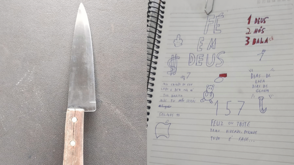 Adolescente é apreendido em escola de Rio Verde com faca e caderno com apologia ao crime