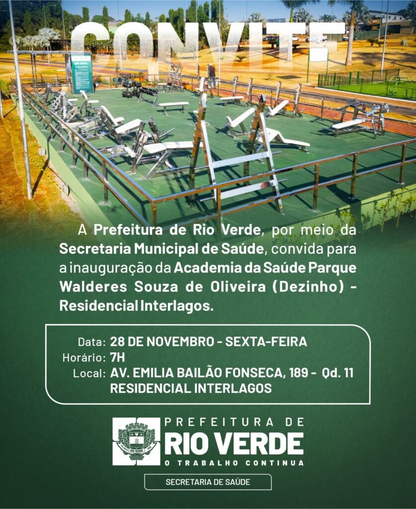 A Prefeitura de Rio Verde, por meio da Secretaria Municipal de Saúde, dá mais um passo importante na promoção do bem-estar e no incentivo à atividade física. Nesta sexta-feira (28), às 7h, será inaugurada, no Parque Interlagos, a primeira Academia da Saúde do Programa Rio Verde Fit, projeto que promete transformar a prática de exercícios […]