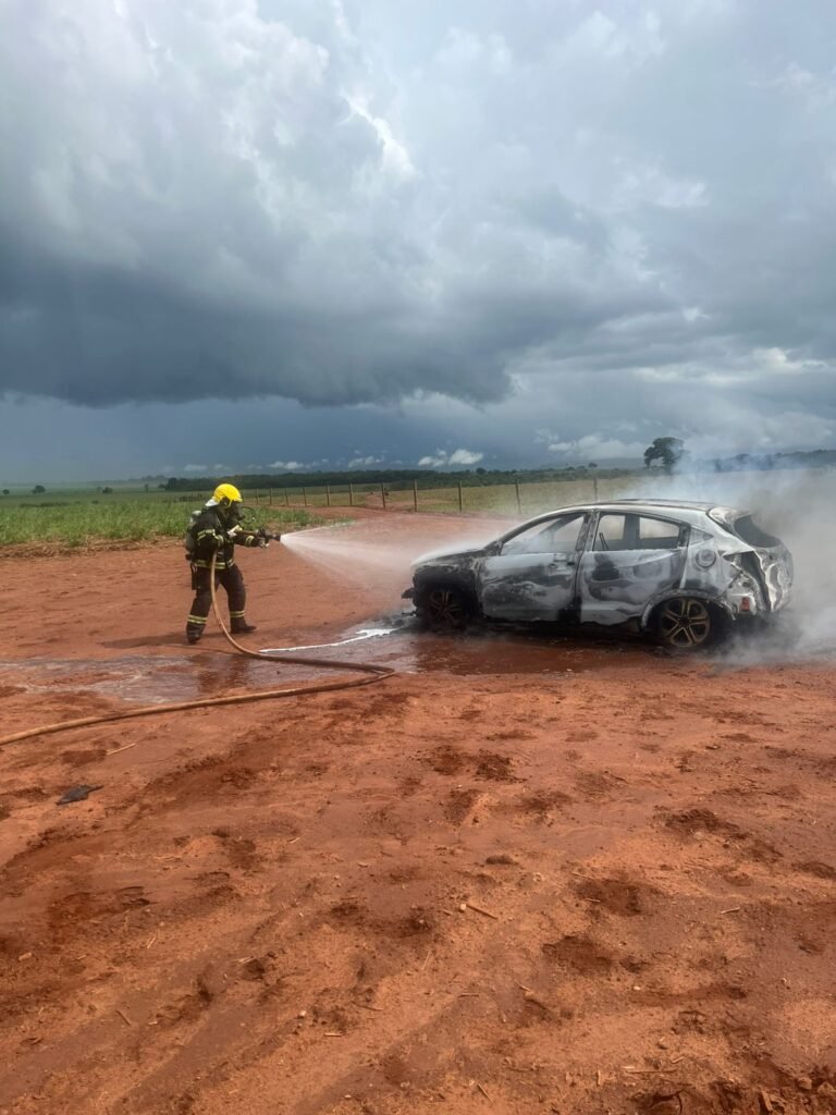 Incêndio destrói veículo de passeio na zona rural de Quirinópolis