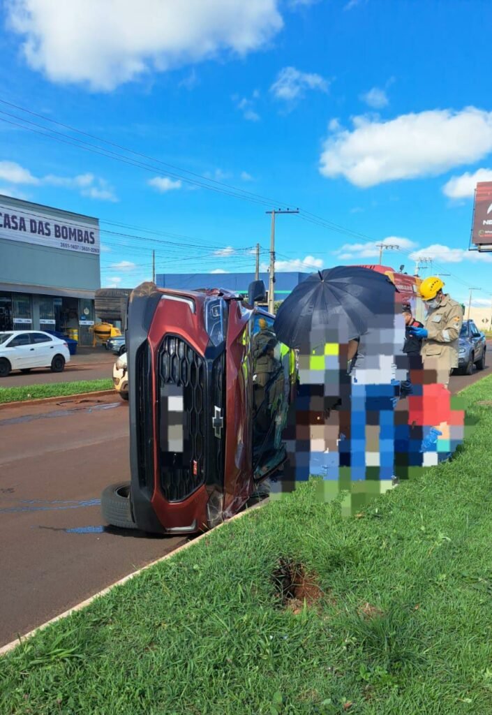 Colisão traseira termina com carro tombado em avenida movimentada de Quirinópolis