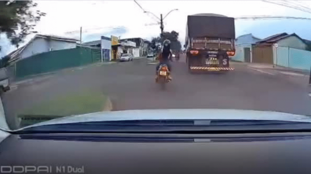 Um quase acidente registrado na Avenida Rio Verde, no bairro Veneza, expõe mais uma vez os perigos da imprudência no trânsito e o risco constante enfrentado por motociclistas ao dividir espaço com veículos de grande porte. As imagens mostram uma carreta trafegando normalmente pela via quando duas motocicletas se aproximam. Ao longo do trajeto, o […]