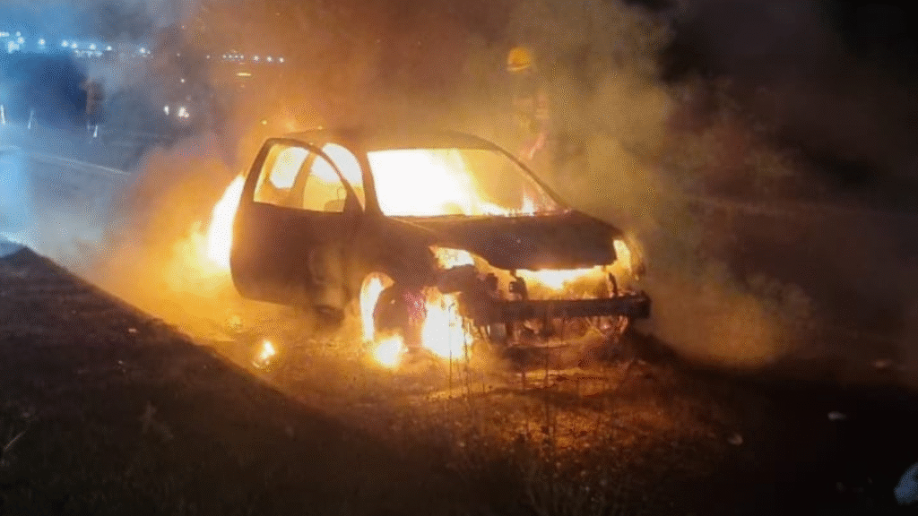 Carro pega fogo na BR-060, em Rio Verde, e mobiliza bombeiros; família escapa sem ferimentos
