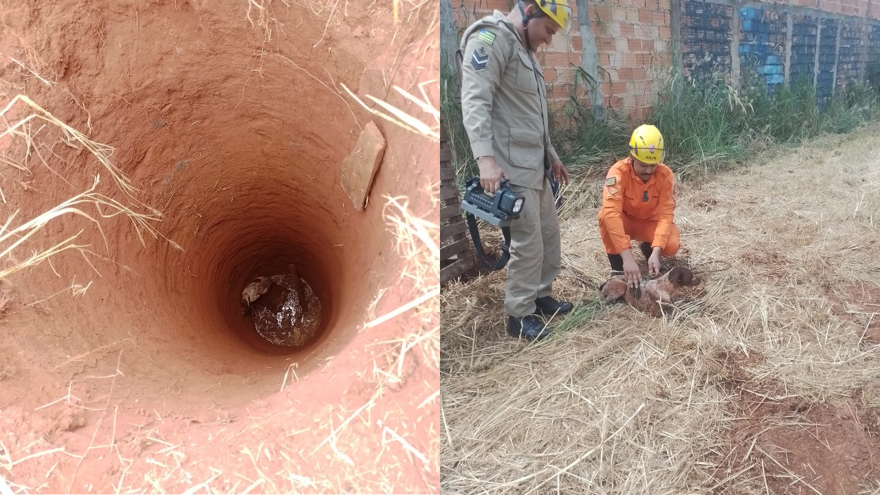 Cão é resgatado com vida após cair em cisterna de 10 metros em Rio Verde