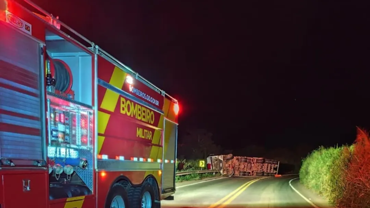 Uma carreta carregada com madeira tombou na madrugada deste sábado (12), por volta das 2h20, no km 200 da BR-158, no trecho entre os municípios de Caiapônia e Jataí, mobilizando equipes do Corpo de Bombeiros e provocando a interdição parcial da rodovia.