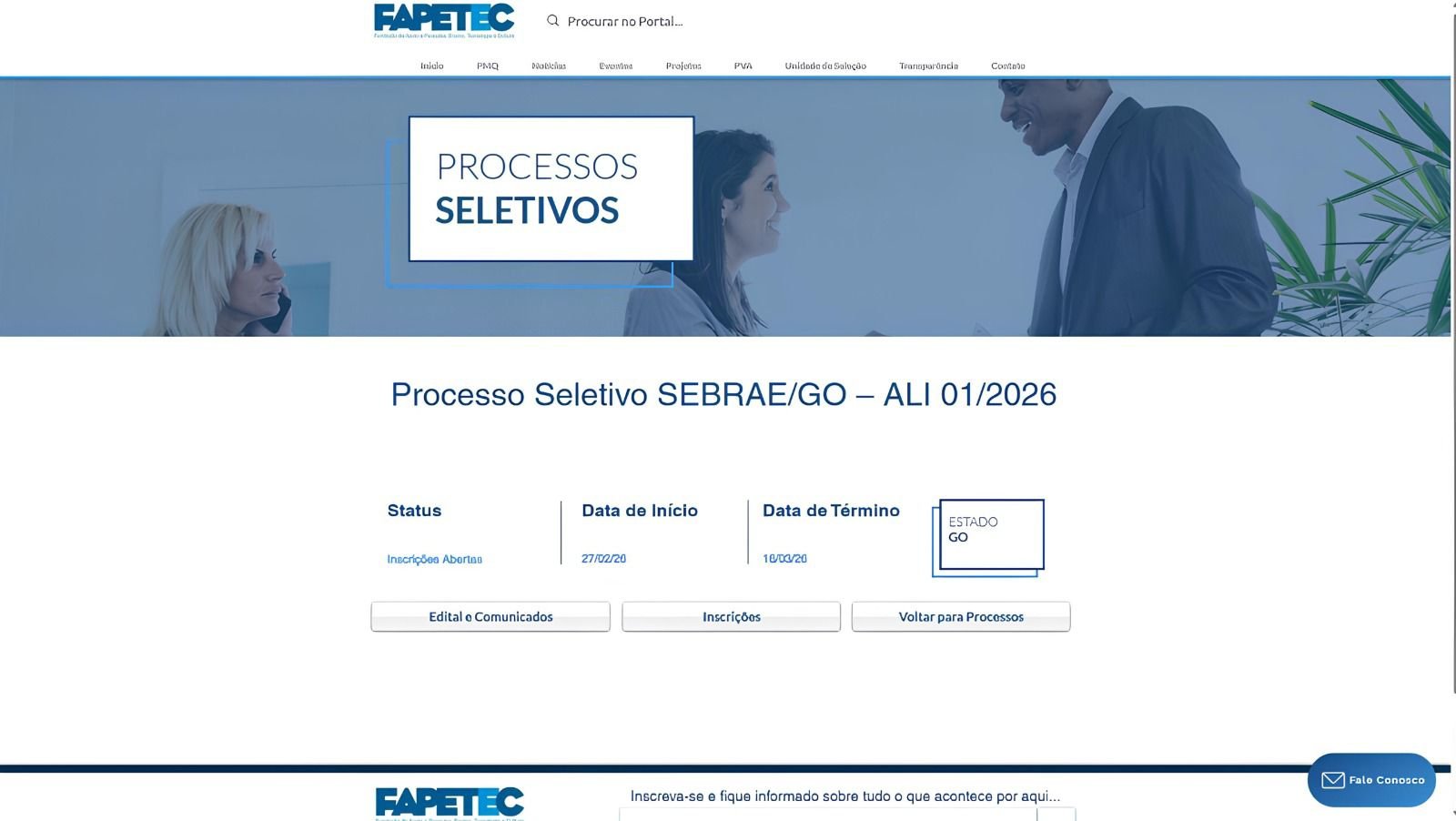O Sebrae Goiás, juntamente com a Fundação de Apoio a Pesquisa, Ensino, Tecnologia e Cultura (Fapetec), está com inscrições abertas para