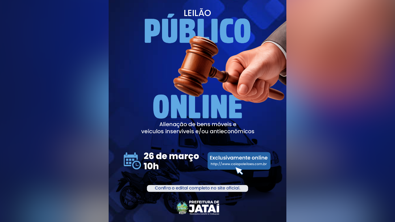 A Prefeitura de Jataí publicou o Edital de Leilão nº 001/2026 e confirmou a realização de um leilão público exclusivamente online