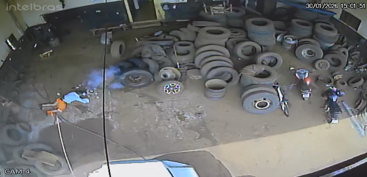 Um motorista de caminhão ficou gravemente ferido após a explosão de um pneu dentro de uma borracharia no bairro Brasil, em