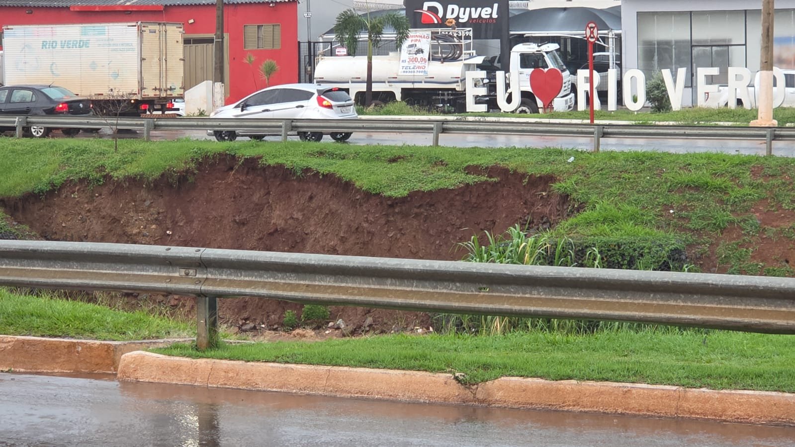 Um desmoronamento em andamento foi registrado na tarde desta quinta-feira (29) no cruzamento da Avenida Paulo Roberto Cunha com a Avenida