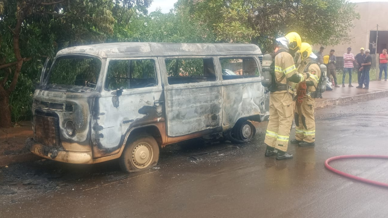 Um veículo do tipo Kombi foi atingido por um incêndio na tarde desta sexta-feira (20), na Avenida Presidente Vargas, no bairro