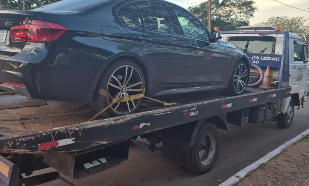 Uma BMW foi apreendida pela Polícia Militar de Santa Helena de Goiás no último sábado (15), durante um patrulhamento de rotina