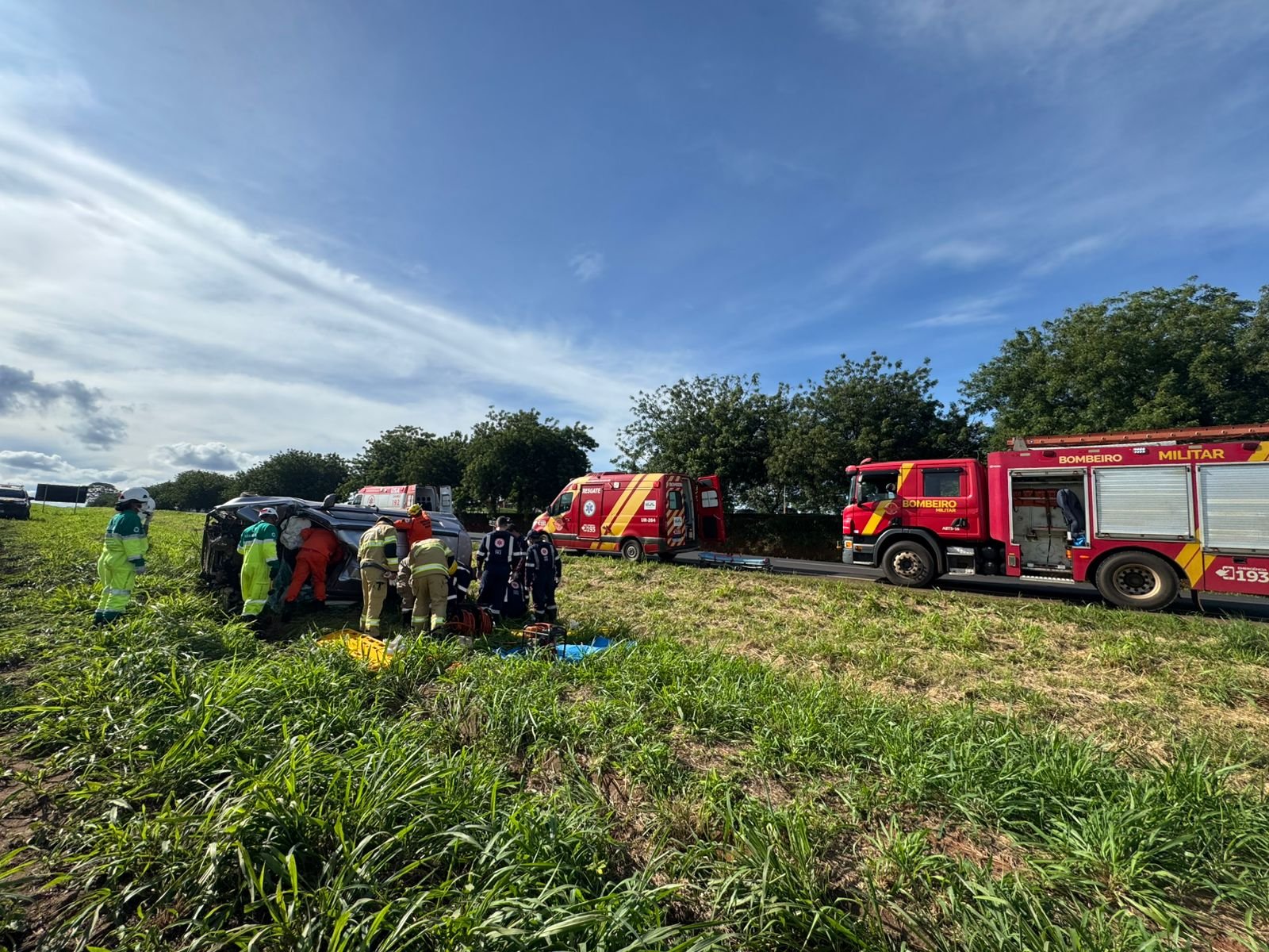 O Corpo de Bombeiros Militar de Goiás (CBMGO) realizou o atendimento pré-hospitalar no local. Após os primeiros socorros, uma vítima do sexo feminino e uma do sexo masculino foram encaminhadas ao hospital pela Unidade de Resgate UR-290. Já a terceira vítima, um homem, foi transportada em estado que demandou maior atenção pela Unidade de Suporte Avançado (USA) do SAMU.