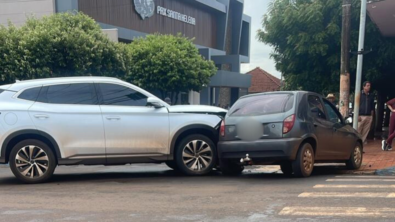 Uma colisão entre dois veículos foi registrada na tarde desta sexta-feira na rua Teodomiro Rêgo, no centro de Santa Helena de Goiás, na esquina próxima à Pax Santa Helena. Apesar do impacto, ninguém ficou ferido.