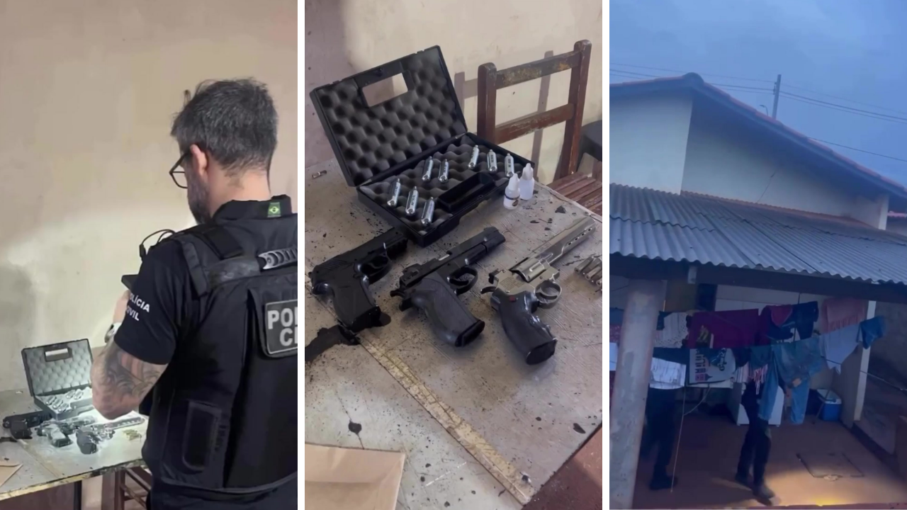 Durante o cumprimento da ordem judicial, os policiais localizaram e apreenderam três simulacros de arma de fogo que estavam armazenados no imóvel. O material foi recolhido e passará por análise no curso das investigações, que seguem sob sigilo.