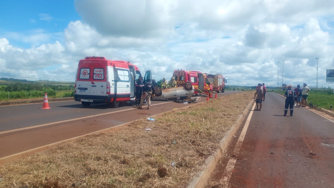 De acordo com o Corpo de Bombeiros Militar, a guarnição foi acionada pelo telefone de emergência 193 para atender a uma ocorrência de capotamento envolvendo um veículo de passeio, com informações iniciais de múltiplas vítimas. Ao chegar ao local, os socorristas encontraram o carro capotado às margens da rodovia, com cinco ocupantes.